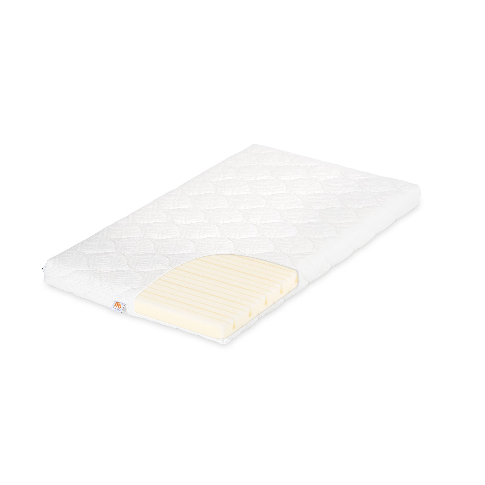 Die feste Matratze für höchste Stabilität und besonderen Schlafkomfort. Der punktelastische PU-Komfortschaum passt sich optimal an den Körper Deines Babys an und sorgt für erholsamen Schlaf. Der atmungsaktive Tencel-Bezug (64 % Polyester, 36 % Lyocell) reguliert Feuchtigkeit ideal, ist abnehmbar und bei bis zu 60 °C waschbar – ideal für angenehme Nächte.